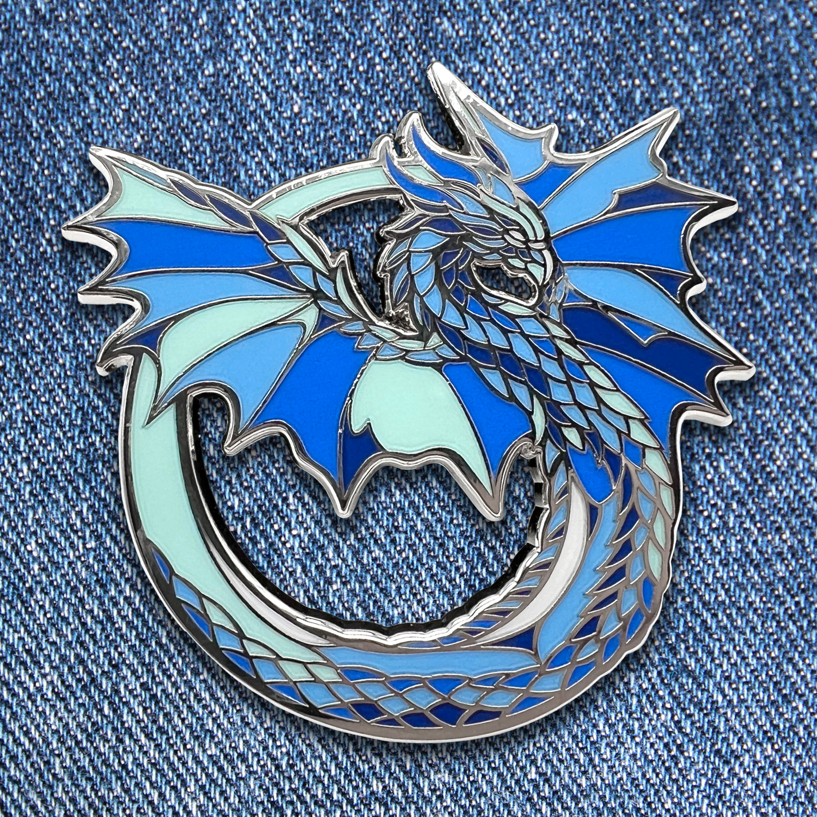 One of my series of six hard enamel Rainbow Dragon pins, Azure is decked out in several shades of vibrant blue.