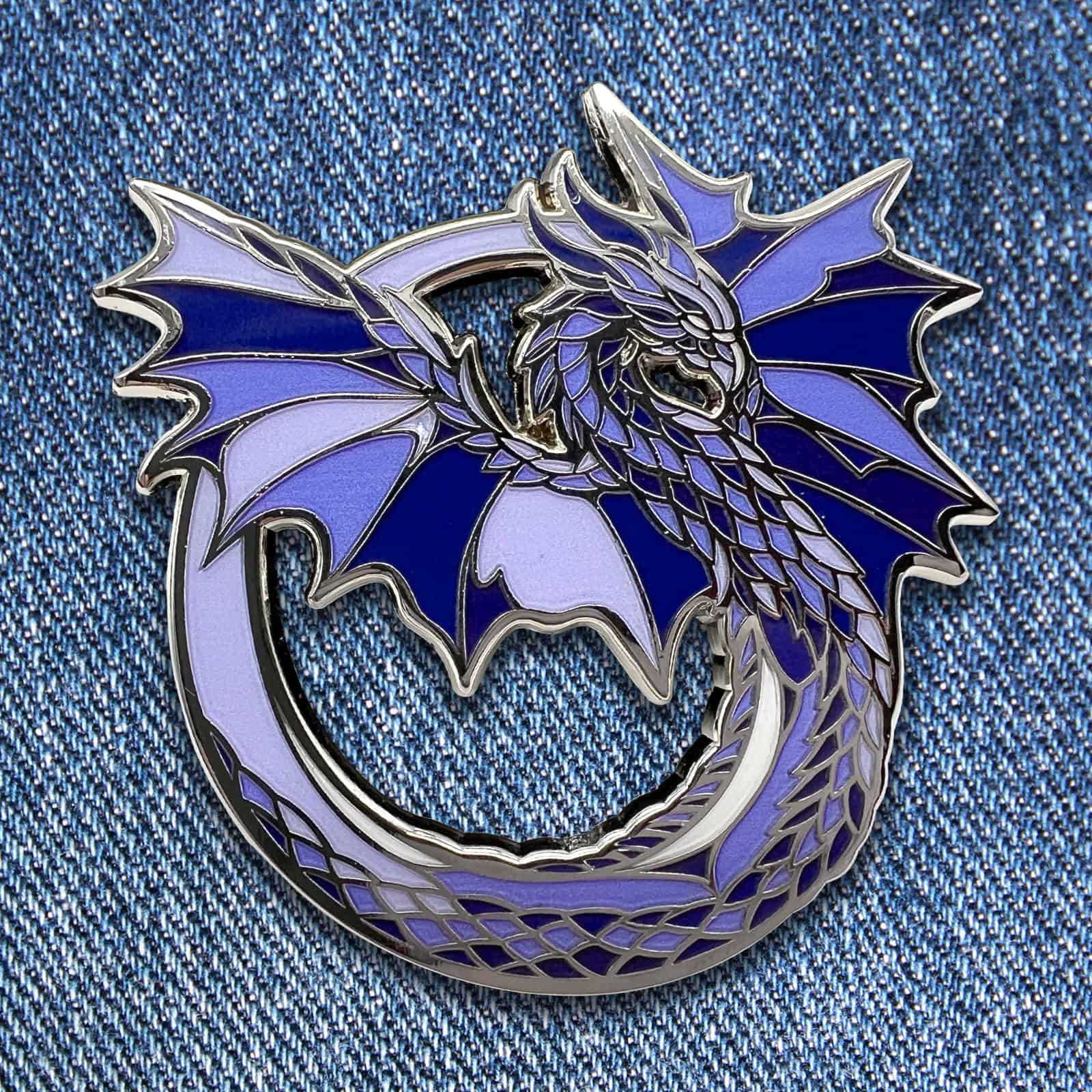One of my series of six hard enamel Rainbow Dragon pins, Violet is decked out in several shades of rich purple.